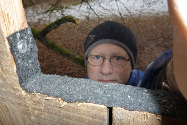 Lite takpapp i nederkanten på hålet kanske ger bättre grepp och lite träskydd?