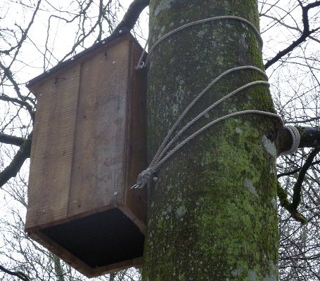 Träd växer, så vart 3-4 år är det lämpligt att lossa på rep och band runt trädstammen där holken är fäst.