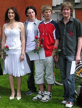 en kombinerad jul- och nyårshälsning. Arvid har börjat gymnasiet, och går i ettan på samhällslinjen. Men vad som kanske märks mest här hemma är att han också kommit in på musiktillägget på skolan, dvs extra musik i olika former. Här hemma spelas Arvid in en massa egen musik, och nu vid jultid gav han ut sin "demo", en cd under det egna namnet nortum, på webben (för tillfället iaf) www.nortum.tk. Frida har jobbat en massa med tidning m m på TechGroup (med grrlTech) och går sedan i augusti på Leksands folkhögskola, på kursen Digital bild. Det verkar vara väldigt intressant, tycker jag. Efter ett år på LTH i Lund (ind.ekonomi), så kom Tobias äntligen in på läkarlinjen i Lund till sin stora, stora glädje. Nu pluggar Rebecka i Växjö, så det blir en hel del resande för dem mellan Lund och Växjö. I somras var Inger och jag på tur i Skåne, se nedan. I övrigt ägnade jag mig mycket år segelflyg i somras. Flygfältet är Kronobergshed, norr om Alvesta. En höjdare var en helg i somras, när Växjö trafikflygplats var semesterstängd, då jag kunde flyga in över Helgasjön, Sandsbro, Gårdsby och de andra välbekanta platserna här hemmaomkring (normalt ligger de inom kontrollerat luftrum och är inte tillgängligt för segelflyg). Nu är det bara två