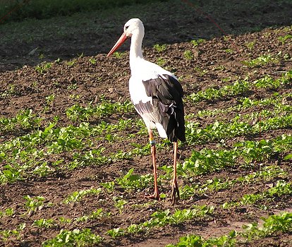 Frigående stork vid hägn i Vattenrikets Storkprojekt