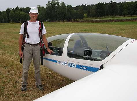 Jag utökade mitt certifikat med sträckflygningstillstånd, grundkurs i avancerad flygning, steg2-tränare och fick ihop ett silver-C-diplom. Nedan en bild från sträckflygningsutbildningen, en utelandning på "annan plats".