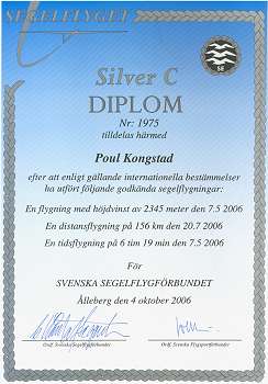 Men så blev den flygningen (6 tim och över 2 km höjdvinst i termik) också en i silver-C-diplomet: